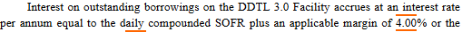 The DDTL is priced at S+4.00% (~8% all-in interest rate). Note: In 2024, CoreWeave first DDTL was priced at S + 9.62%. Most recently in July 2025, CoreWeave closed on a $2.6B DDTL commitment at S + 4.00%.