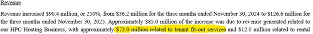 The Tenant Fit-Out Assumption of $75MM was based on Applied Digital’s latest 10-Q, which stated they “earned approximately $73MM for tenant fit-out services during the current quarter”. Applied Digital fully energized their first 100MW building for CoreWeave during this quarter, making the $73MM figure a reasonable estimate for the purposes of our 100MW analysis.
