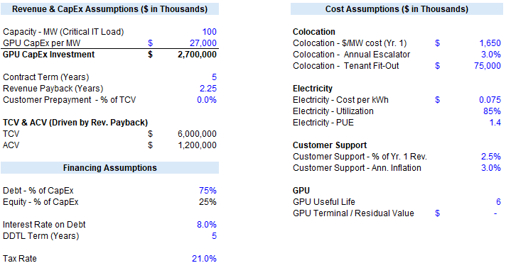 · There is zero assumed residual value for the GPUs after the 5-year contract.